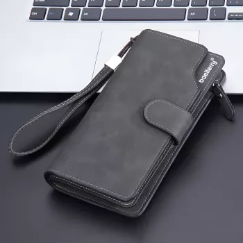 Men’s Long Clutch Wallet – Leather Zipper Wallet with Card Holder and Large Capacity